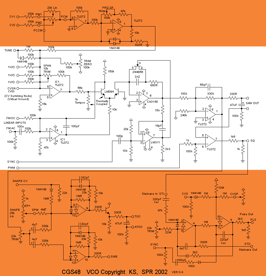 Quite frankly, I wouldn't bother trying to voltage control oscillators using this core. That is why I called it the utility LFO i.e. plain, minimum options. You really need a ca3080 at the core instead of plain old op-amps. One day I''' get around to it, but don't hold your breath. You are better off just using a VCO with a divided output, or running really slow. _________________ http://www.cgs.synth.net/ |