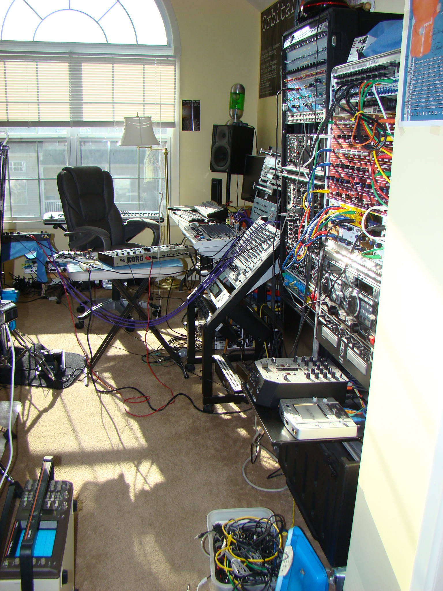 Right now I don't have any keyboard to play with in here, just a Doepfer MAQ sequencer I got recently (and am not too experienced with yet) and a Korg Electribe ES-1 to input notes.