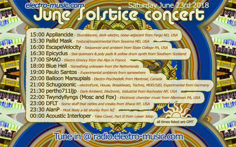 The event will be on electro-music radio on Saturday June 23th 2018.