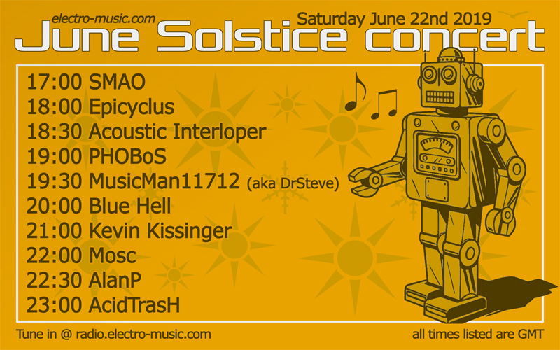 The event will be on electro-music radio on Saturday June 22nd 2019.