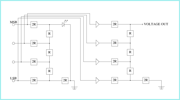 (And of course - the 4 or more BITs are sent to an R-2R, or, just diode summed.)