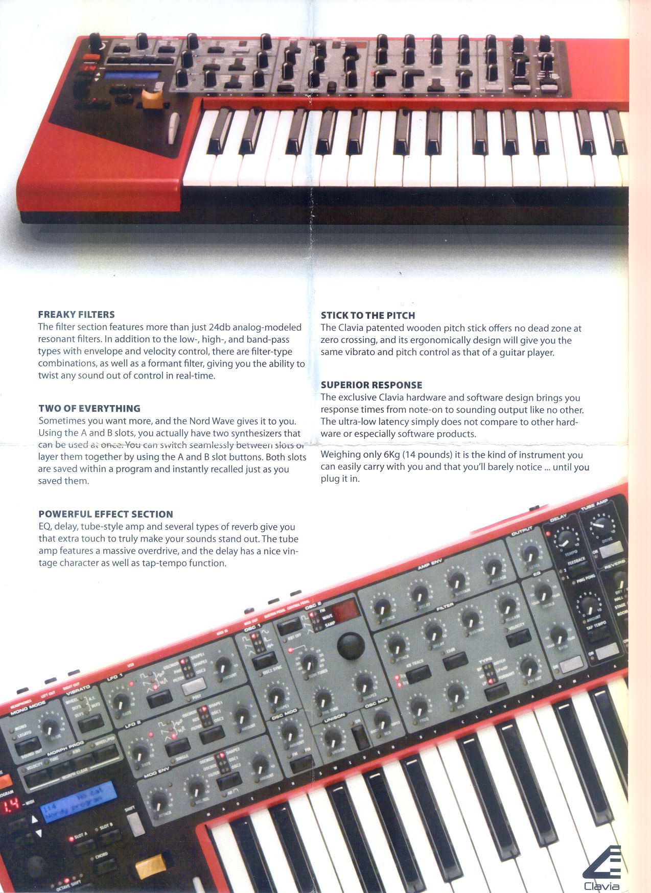 The retail price of the Nord Wave is as yet undecided, it will probably be somewhere between the price of the Nordlead 2X and the three octave G2, but new features might still be added to the Nord Wave that could influence the final price.