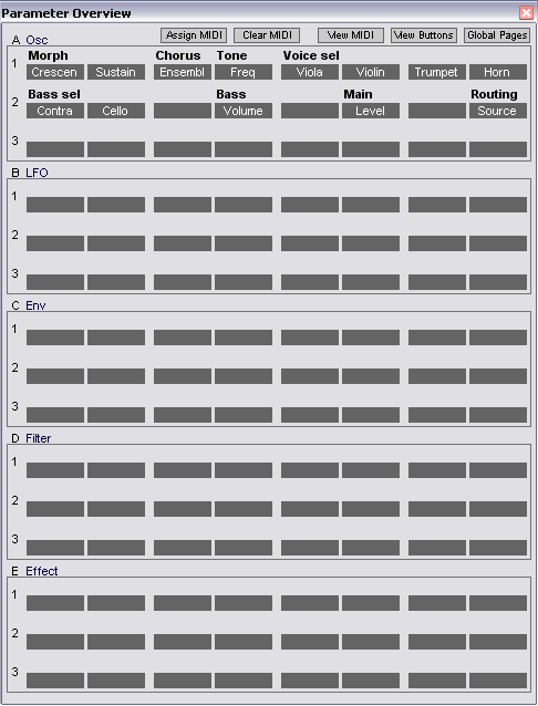 Parameter pages A1 and A2 are the same as in the previous patch version. All other parameter pages have been erased. No variations have been programmed.