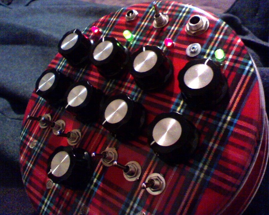 It's a DIY unit built into a cookie tin by Damon Mar. Not being a DIY builder myself, I'm pretty ignorant about specific details of the design and fabrication, but I can explain the basic functions of the synth from an end-user's point of view.