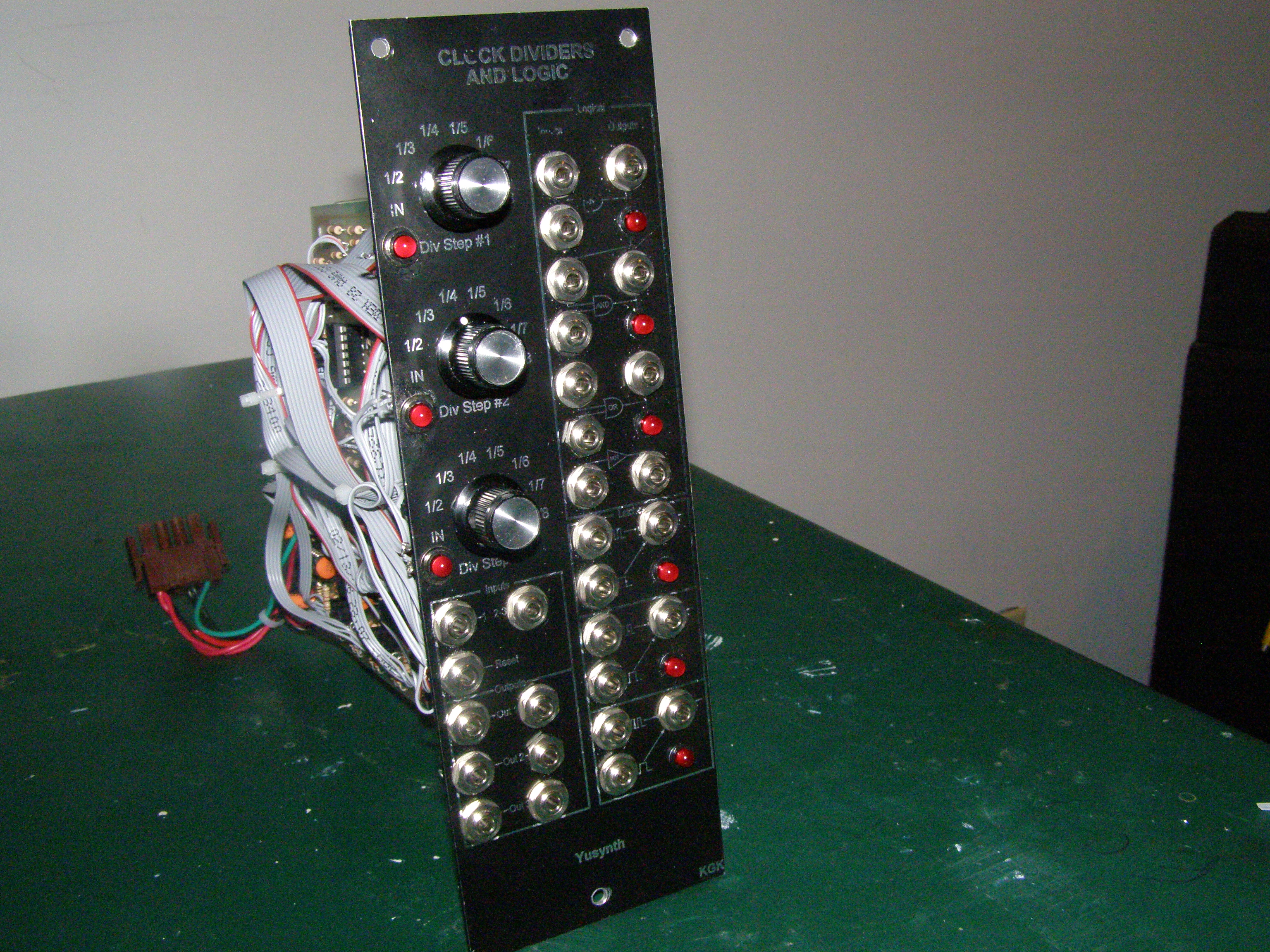 The Schmitt Trigger circuit board is my own design -- nothing overly complicated but a chance for me to acquaint myself with Eagle software. The other boards are Yusynth designs.