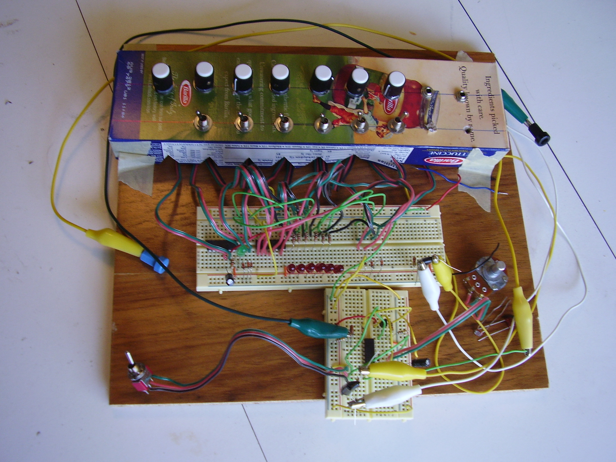 The story of my life: prototyping. I always manage to incorporate food-related containers into my protos... shown here is part of a sequencer project and a ramp/pulse generator.