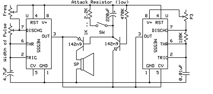 I just found another sketch of my ancient 555 timer sound device showing ideas I had for modifying it.