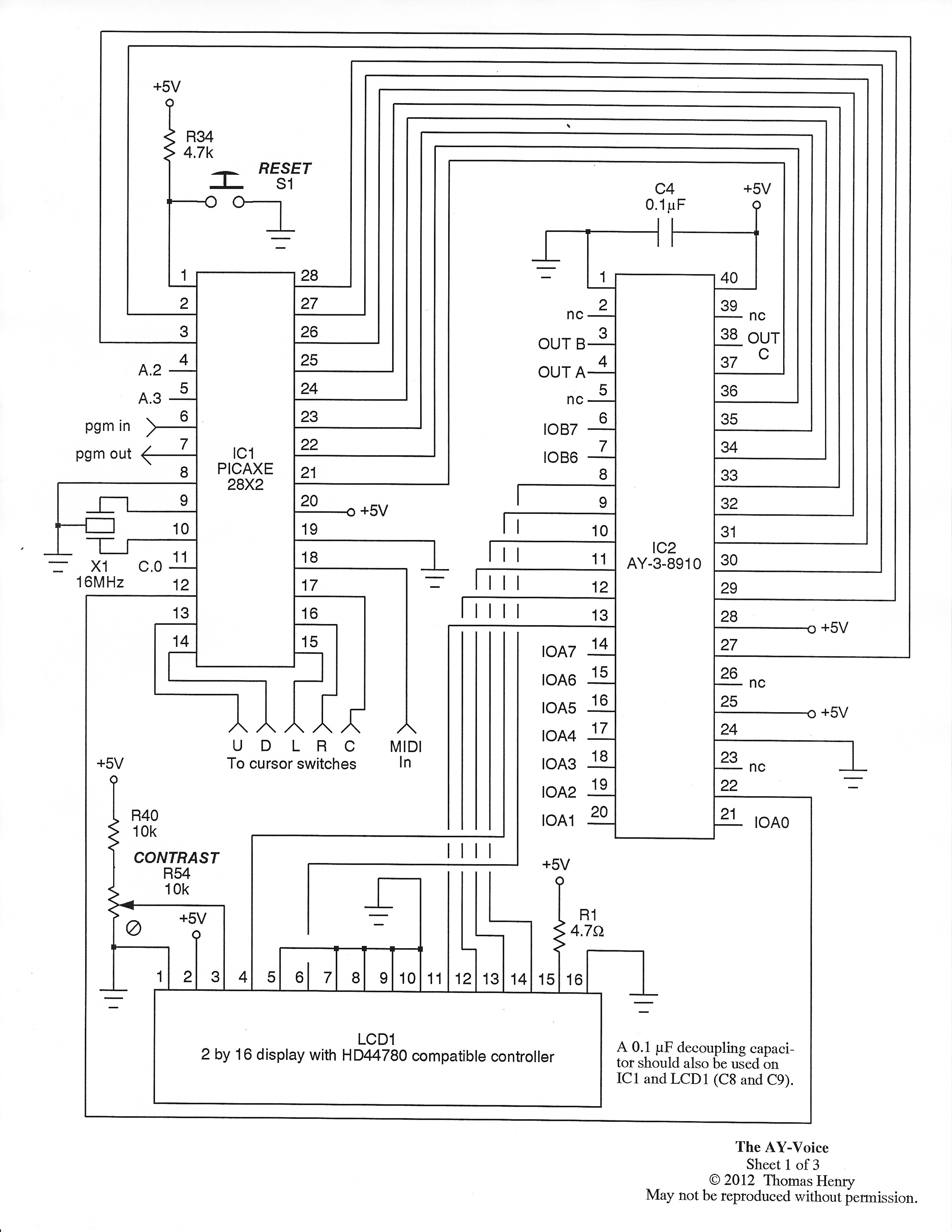 I just wanted to chime in and say that I have also been lurking in the background watching this thread and planning to build this. Last night I feverishly started looking for my AY-3-8910 IC and finally found it. I was going to use a generic PIC 18F252 IC and PIC Basic Pro since the language is very similar to the PICAxe, but decided to order the PICAxe just to be compatible.