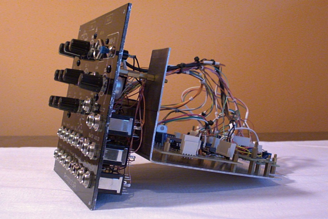 this is my first synth - Stylophone clone (100% analog), enclosure contain parts from '70 laboratory equipment. Second synth - MFOS Sound Lab (uses one-side board), from 2011/2012.