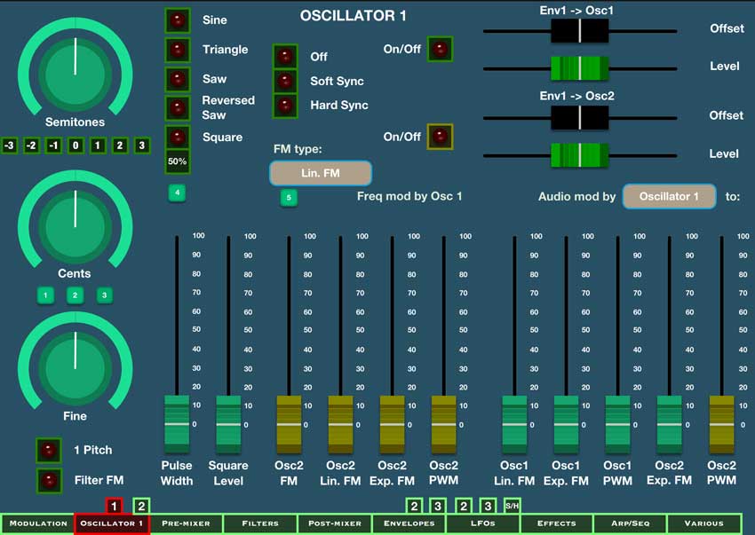 Oscillator 1 (with all parameters on one page, including links to the mod pages)