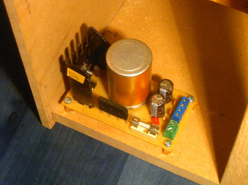 | 12V PSU installed in the case (will be connected to an AC wallwart) |