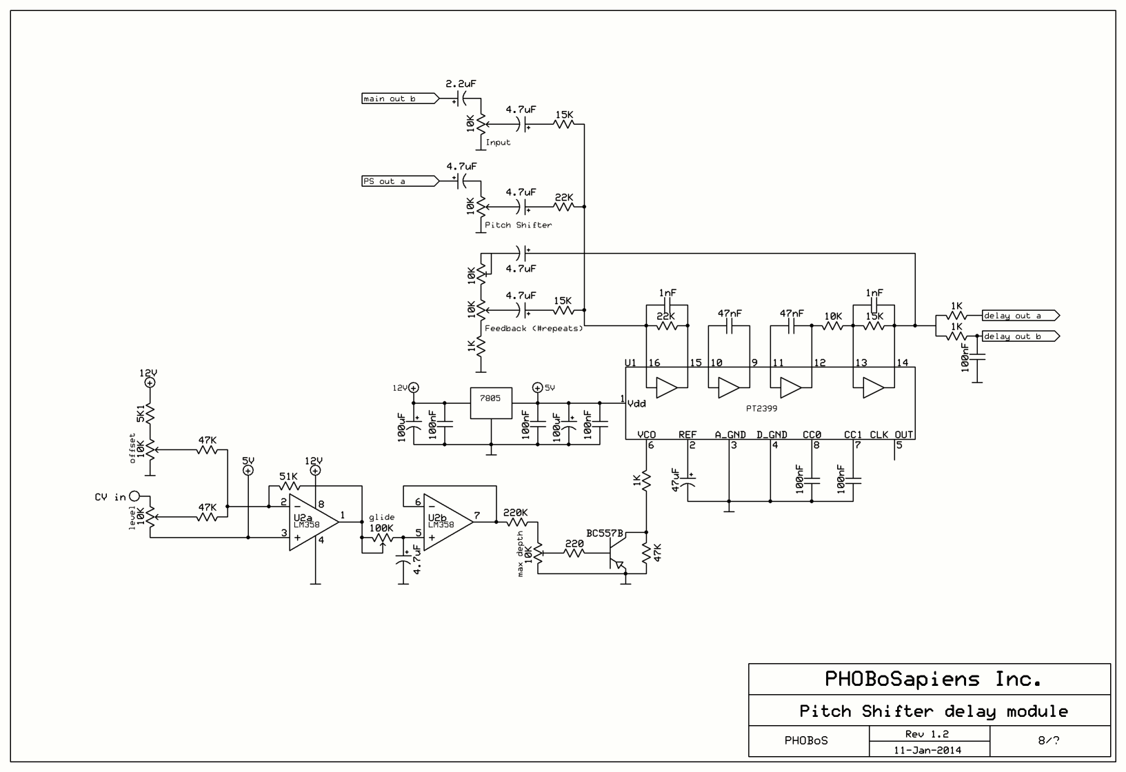 pitch shifter, after the pitch shifter, or in the feedback loop. I could add some switches, but I've decided to add a mixer to the input of both the