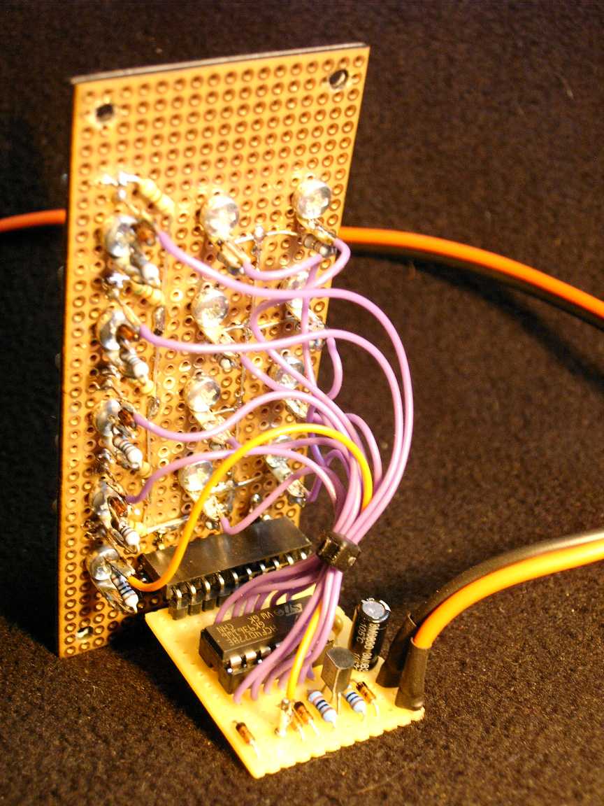 I soldered the LED's to the back of the front facing outwards, so they shine through the perfboard.