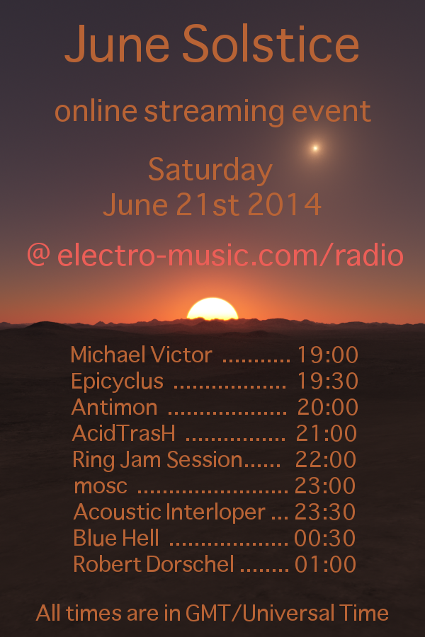 Everyone records their outgoing stream and posts it after. It is therefore perhaps not really a live (or at least centralised) event, but it should be interesting anyhow. |