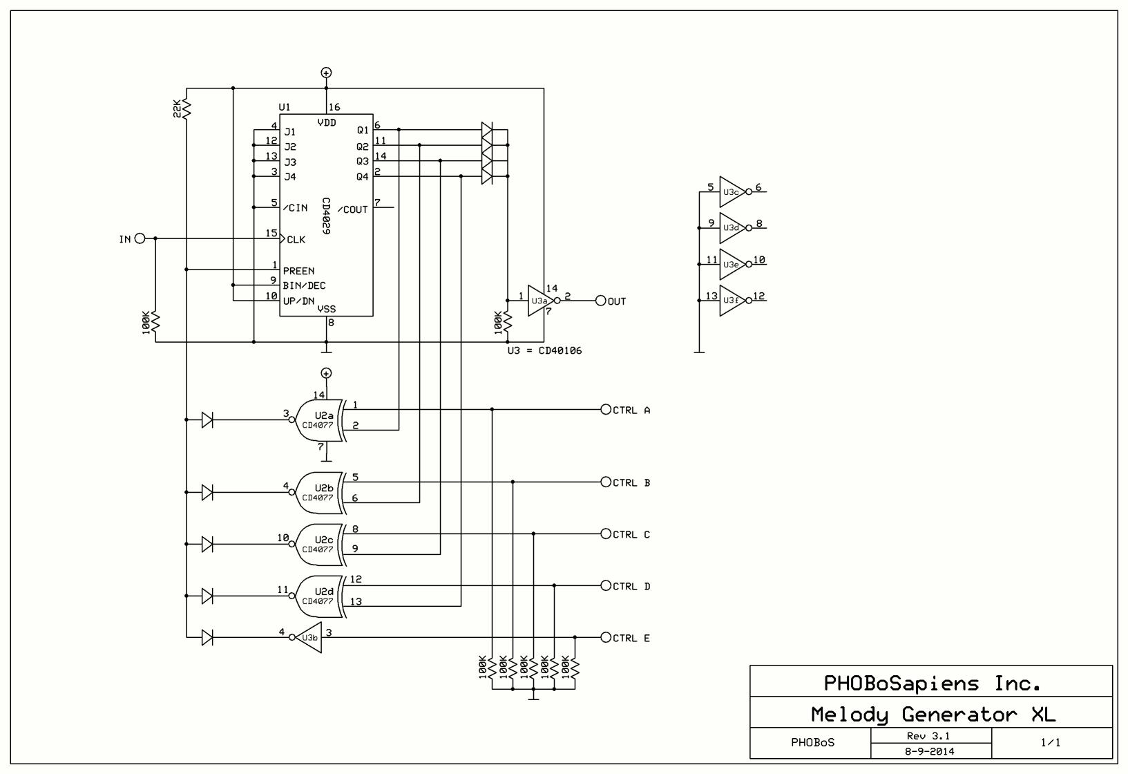 But I didn't really like the transistor on the output in [V3.0] so I drew a version [V3.1] which uses a CD40106 inverter instead,