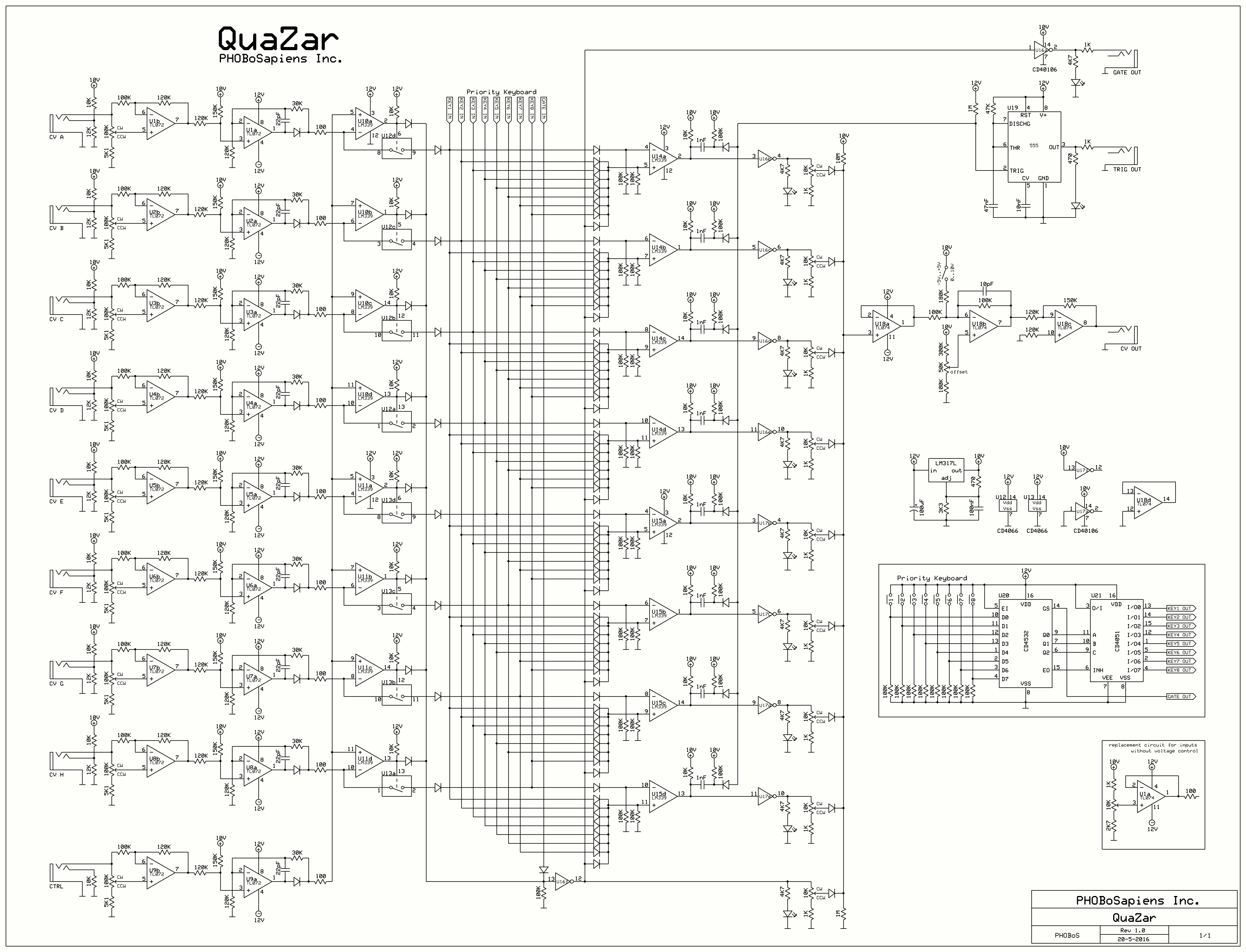 QuaZar Subject description: adjustable quantizer/custom keyboard/VC Sequencer/waveshaper |