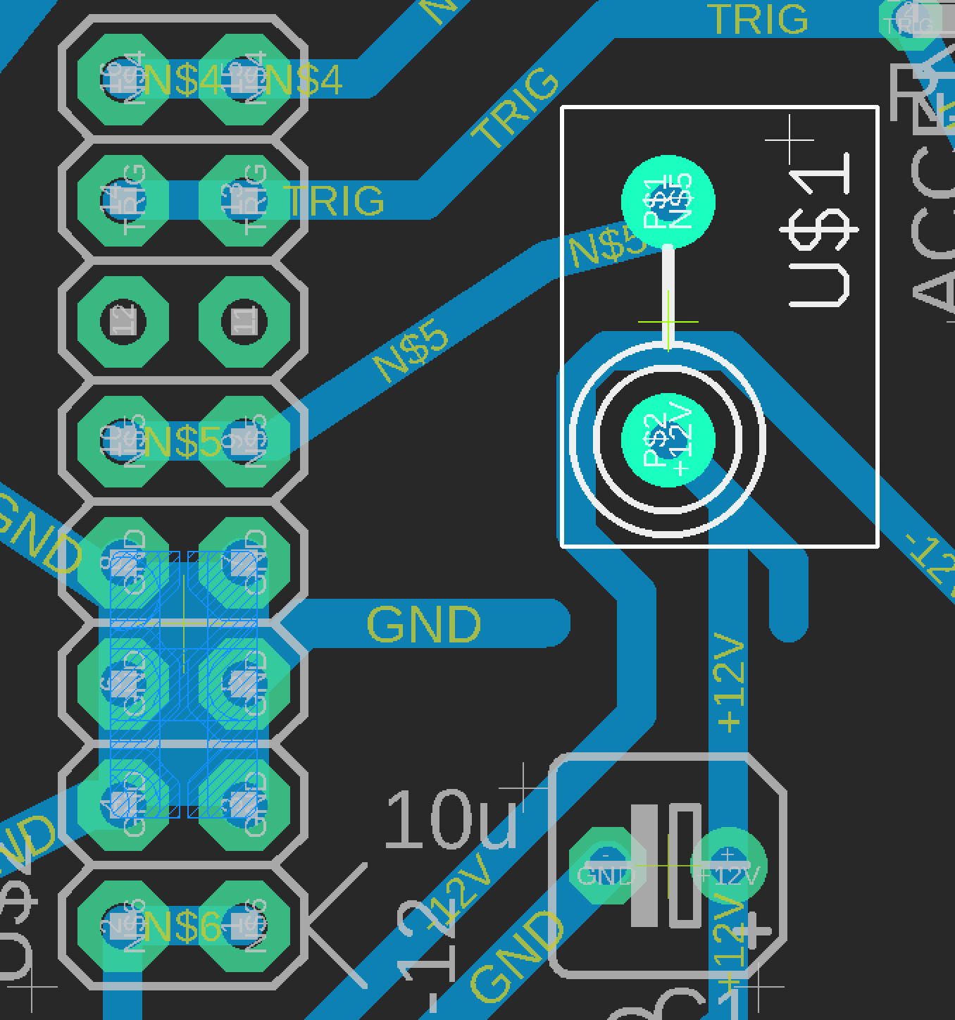 On BD U$2 is power connector, U$1 seems to be between +12V rail and U$3 between -12V rail, so are these output pins to somewhere or jumperwires?
