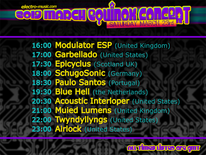 The event will be on electro-music radio on Saturday March 23rd 2019.