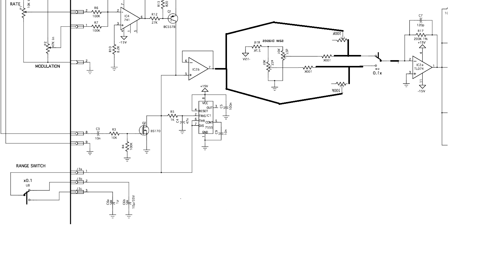 edit2: there are two R17 one at the tri waveshaper IC3C (with the 1n Cap) and another R17 at IC2A (with the 120p Cap) - i was talking about R17 at IC2A (with the 120p Cap) the other one should stay at 200k to produce proper SIN TRI Waves |