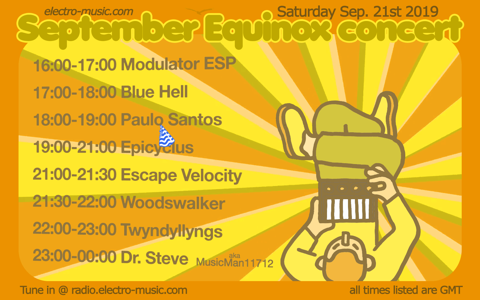 This event will be on electro-music radio on Saturday September 21st 2019.