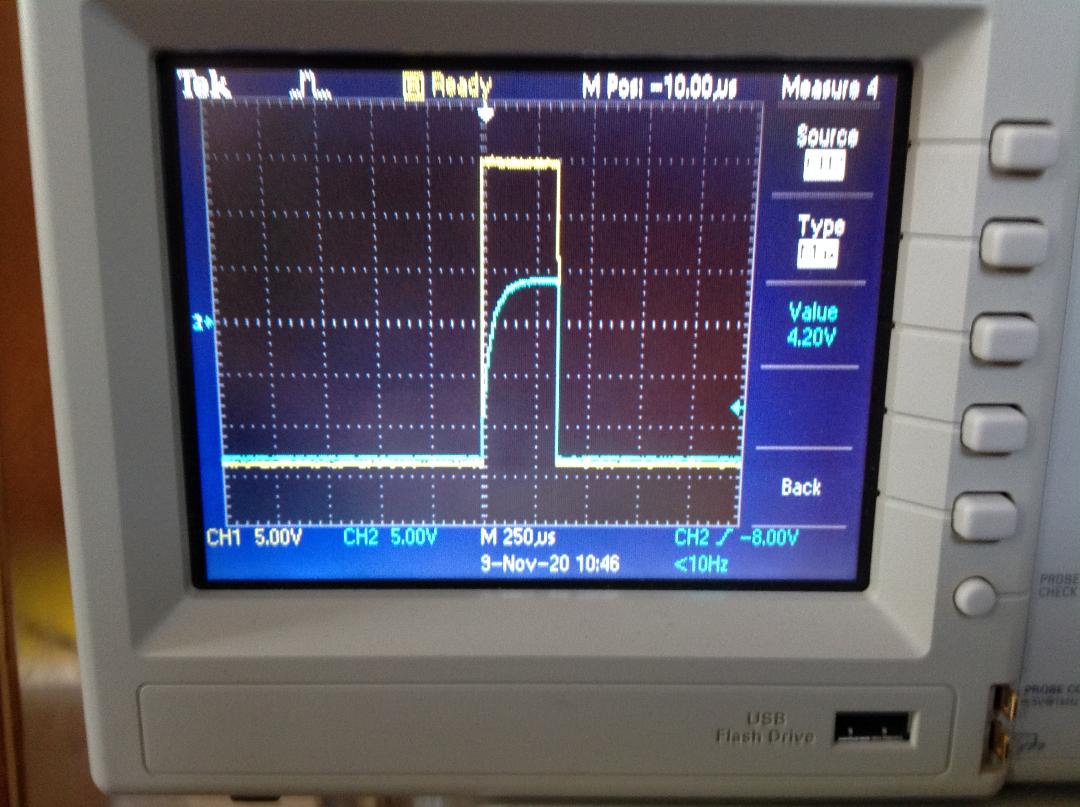 I was wondering if the FET was allowing current to flow one way and not the other, which might explain why the S&H doesn't track well on negative slopes. So I swapped the FET drain and source leads, and that didn't change a thing, so the FET is working properly (source and drain should be interchangeable as far as I know).