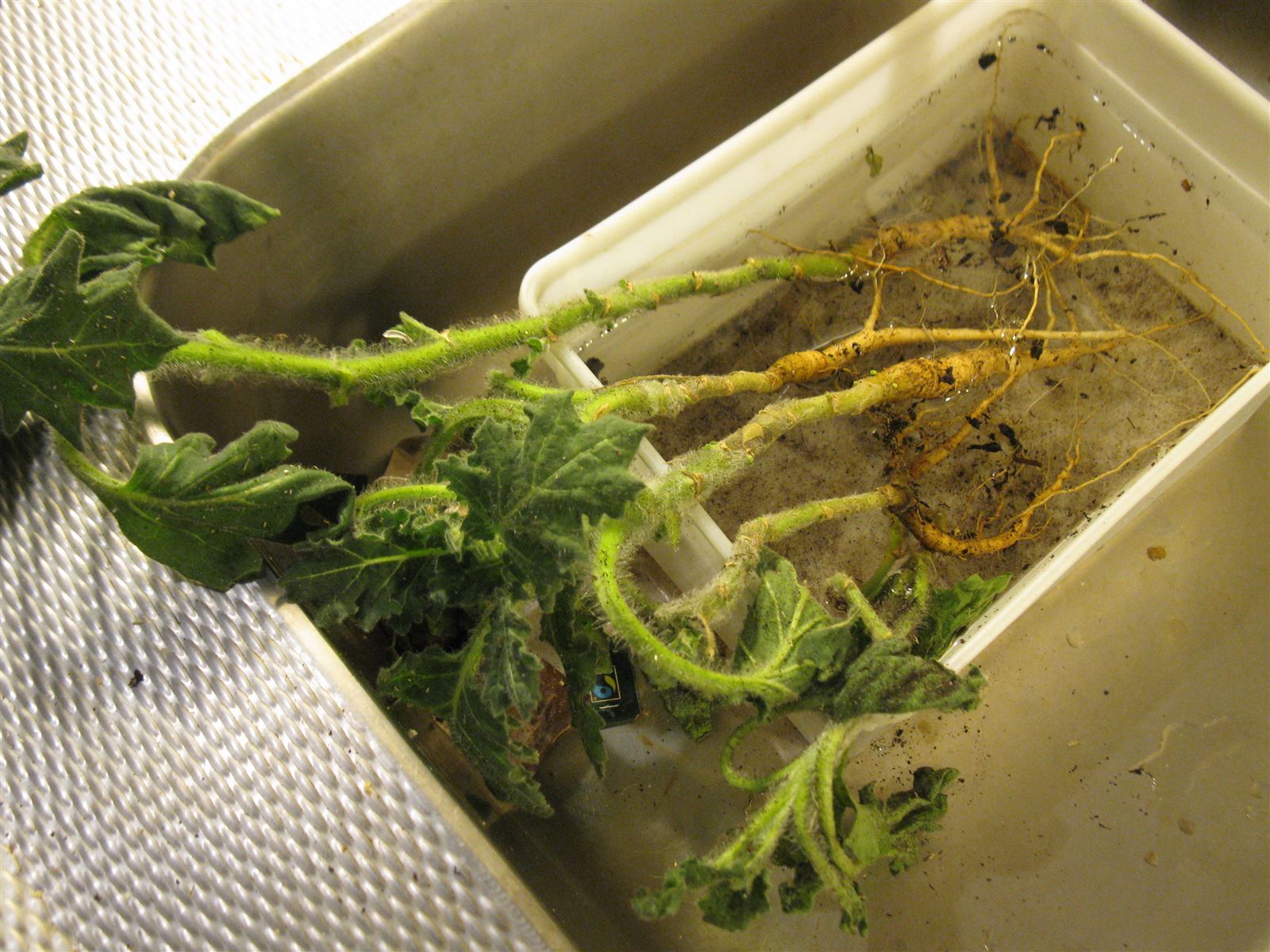 what I've grown before. Anyway I dug them up, removed the lower most wilted leaves and placed the roots in water. It looks