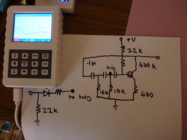 i've been through my components for hours, substituting them with the small assortment i use for breadboarding, wondering about possible errors i may have made. my resistors are all pretty good tolerance and even swapping them out with different values elicits the same crappy contour instead of the pure goaled i had. i've tried shorting it out at various points and trying to discern if an error had achieved the good result. unfortunately, i'm not too hot at capturing waveforms with my fnirsi pro and illustrating the "bad" contour is beyond my ability.