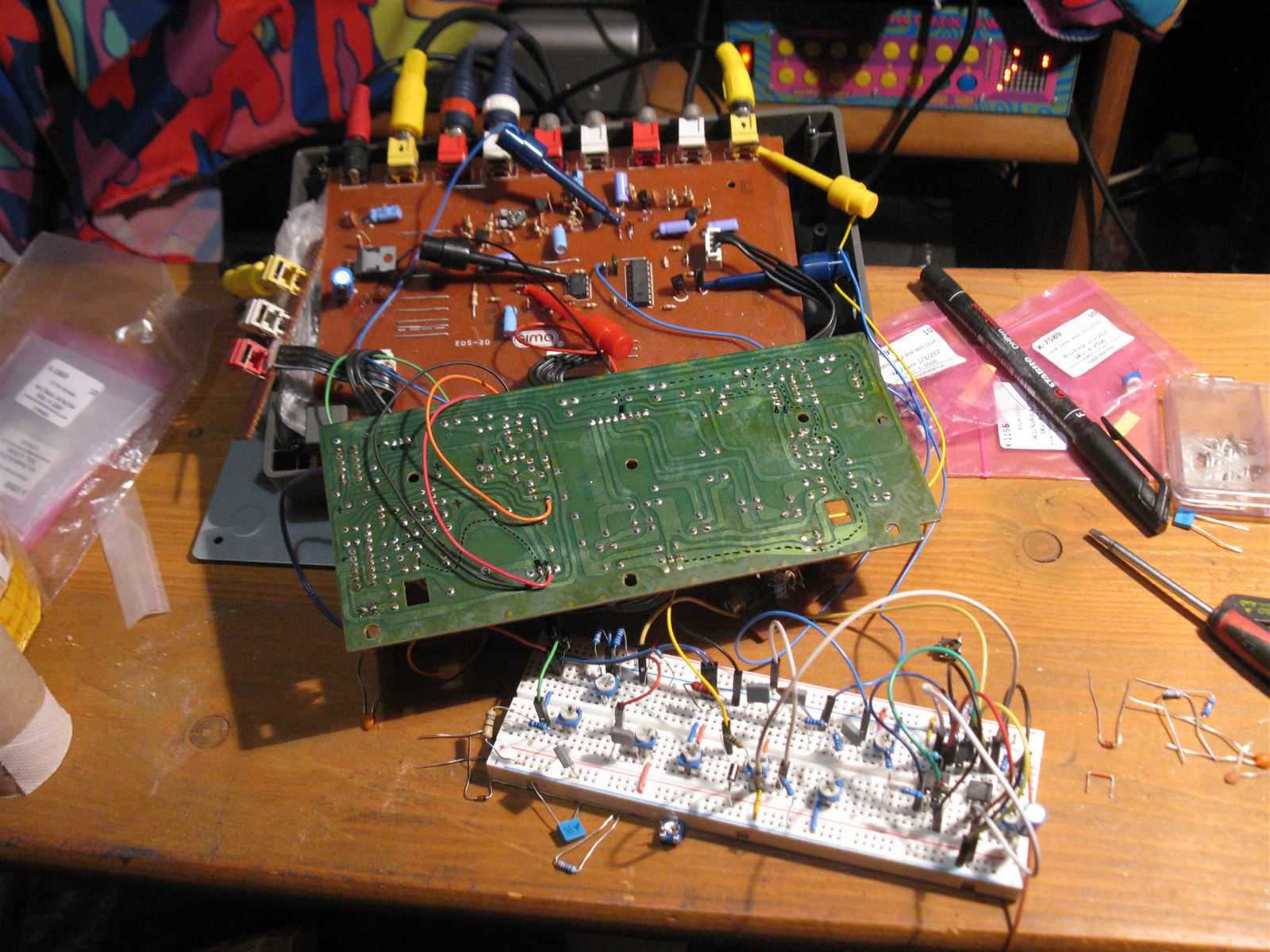 Then the eleborate process began of poking around in the circuit, using resistors/pots/capacitors/inductors to connect