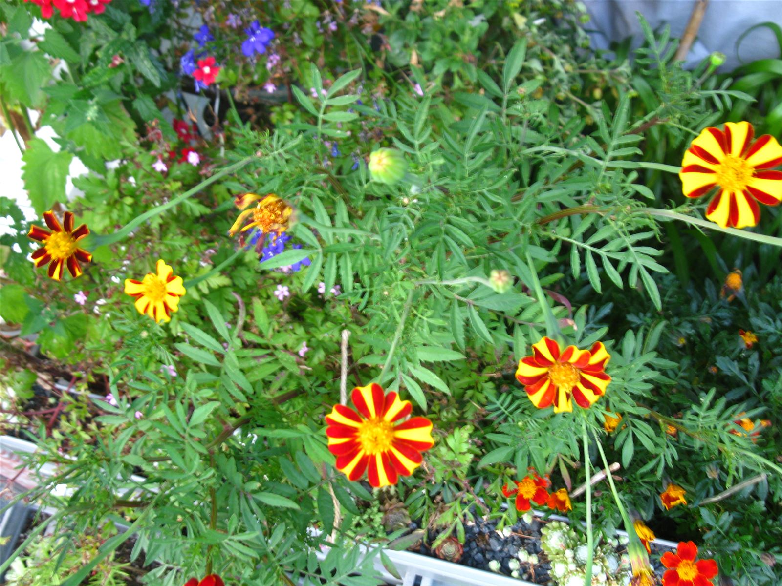 The Purple daisies are doing great and combine nicely with the Marigolds, which are also doing great and just keep on flowering.