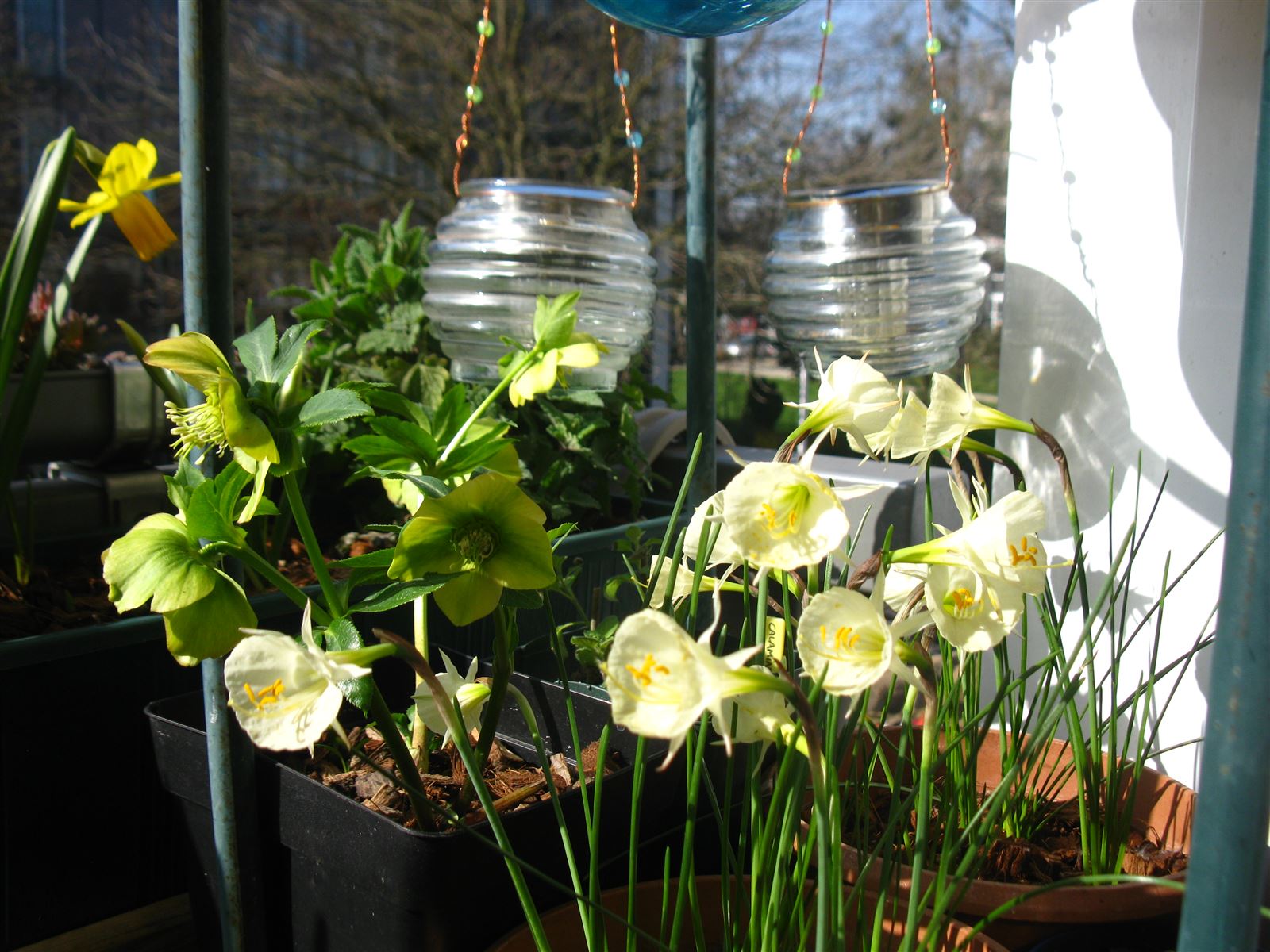 Not only the Daffodils are opening up, the hellebore is growing and producing more flowers as well.