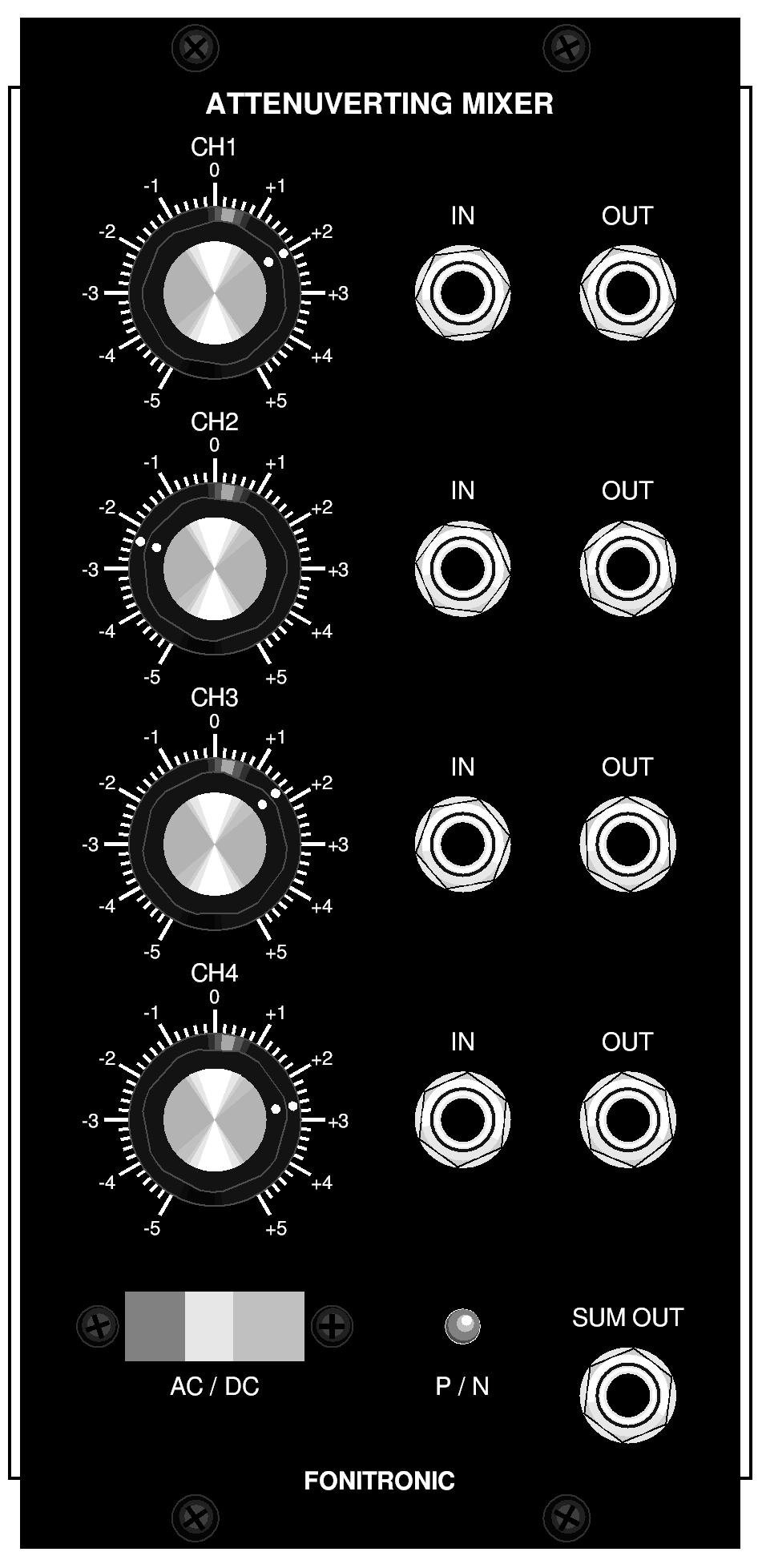 there are many options to think of: i.e. one could use 4 channels for attenuvertion without the offset voltage normalled to these inputs, and then use the 5th channel just for an offset function (without the in/out sockets on the frontpanel).