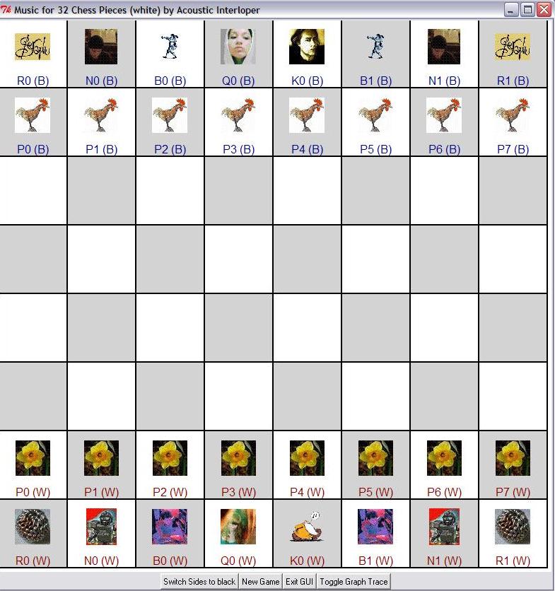 Acoustic Interloper wrote: | For example, to cite your earlier example, a diagonal row of supporting pawns have a series of supportive relationships, and could potentially generate a chord, while the initial row of pawns have no single-move relationship, so they do nothing. I say potentially because right now pawns of the same color generate only 1 or 2 tones, not much of a chord. I should perhaps put more structure into those relationship-to-sound mappings. They are very minimal right now, by intent. |