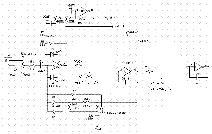 I'm trying to build a 4069 that is just a state variable filter like in the wasp schematic minus the CA3080's and cv control.