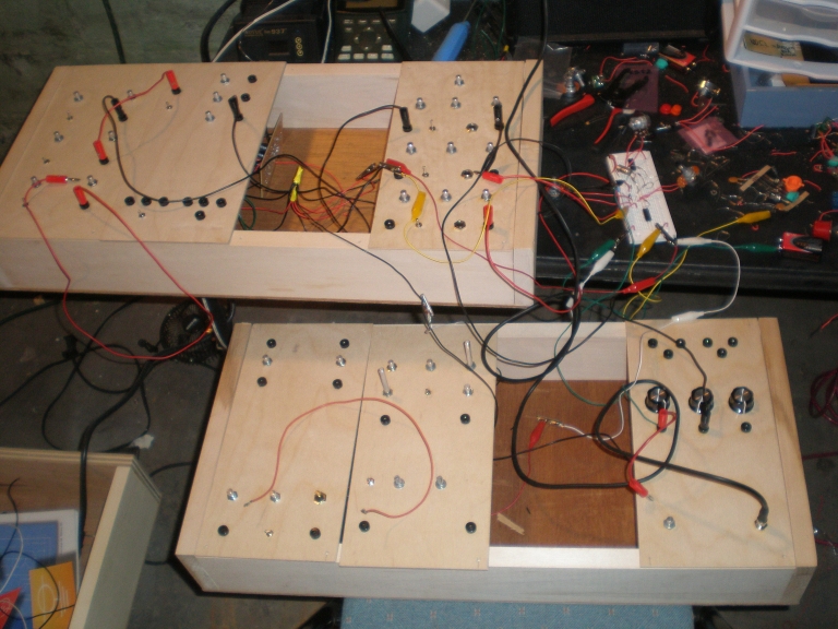 Yeah, those PANELS!!! LOVE 'EM HEAPS! And here's a good example of how alligator clips can look aesthetic and sophisticated on a minimal looking panel. I particularly like the way you have arranged each modules pins as an individual work of art. Alligator clips and nuts and bolt pins are a much more affordable option than banana plugs and jacks... good example of what can be done for prospective builders too!