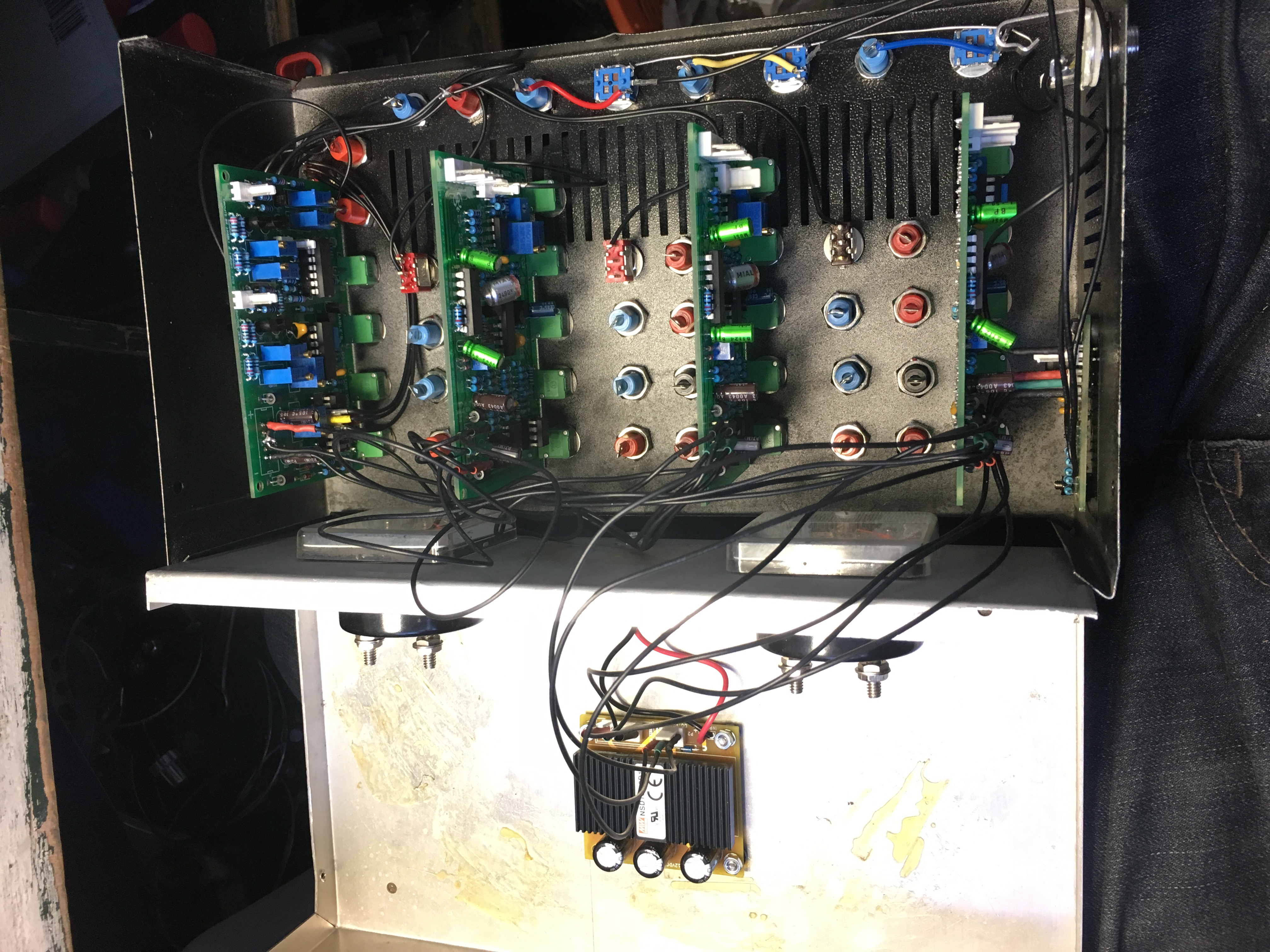 I built it to his spec and used tempcos with thermal paste. It was particularly hot today, but I've had my modular on for 2-3 days and it's been a pretty consistent temperature all day. Could it be the verniers? I've noticed when I tune it using a strobe tuner that it seems almost a tiny bit sluggish at times to catch up with where I've tuned to. For example, if I'm trying to slightly bump it sharp because it's showing to be somewhat flat, it looks to me as though it gets to be just about in tune but then jumps a bit sharp. However even if I leave those alone and try to fine tune with the detune knob on each, it still ends up drifting. This isn't a scaling issue - I'm doing this to a single droning note I'm just trying to get all 3 VCOs tuned to in unison and I'm watching and hearing them drift out of tune rather quickly.