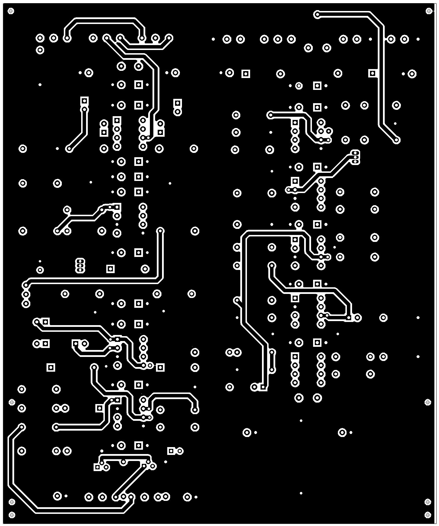 | Good point fonik. Much more prone to short issues particulary with DIY tonner transfer method (http://myweb.cableone.net/wheedal/pcb.htm) thats why I have tried to allow for more generous clearances. The circuit is a pototype mishmosh of a polivoks filter(original soviet op amps) ms20 lfo and preamp to be bundled ito a kind of performance guitar/synth CV stompbox. Yeah bbob no timing sensitive circuitary here however these old opamps are sensitive and hopefully the idea of the substantial ground pour wil reduce noise and inductance. Although I havent tested this circuit yet (still got to sucessfully transfer...now im using argos catalog paper with a laminator to fuse the toner evenly so fingers x'd) ,but you are most likely right it probably does wont make a big difference with this kind of build. |