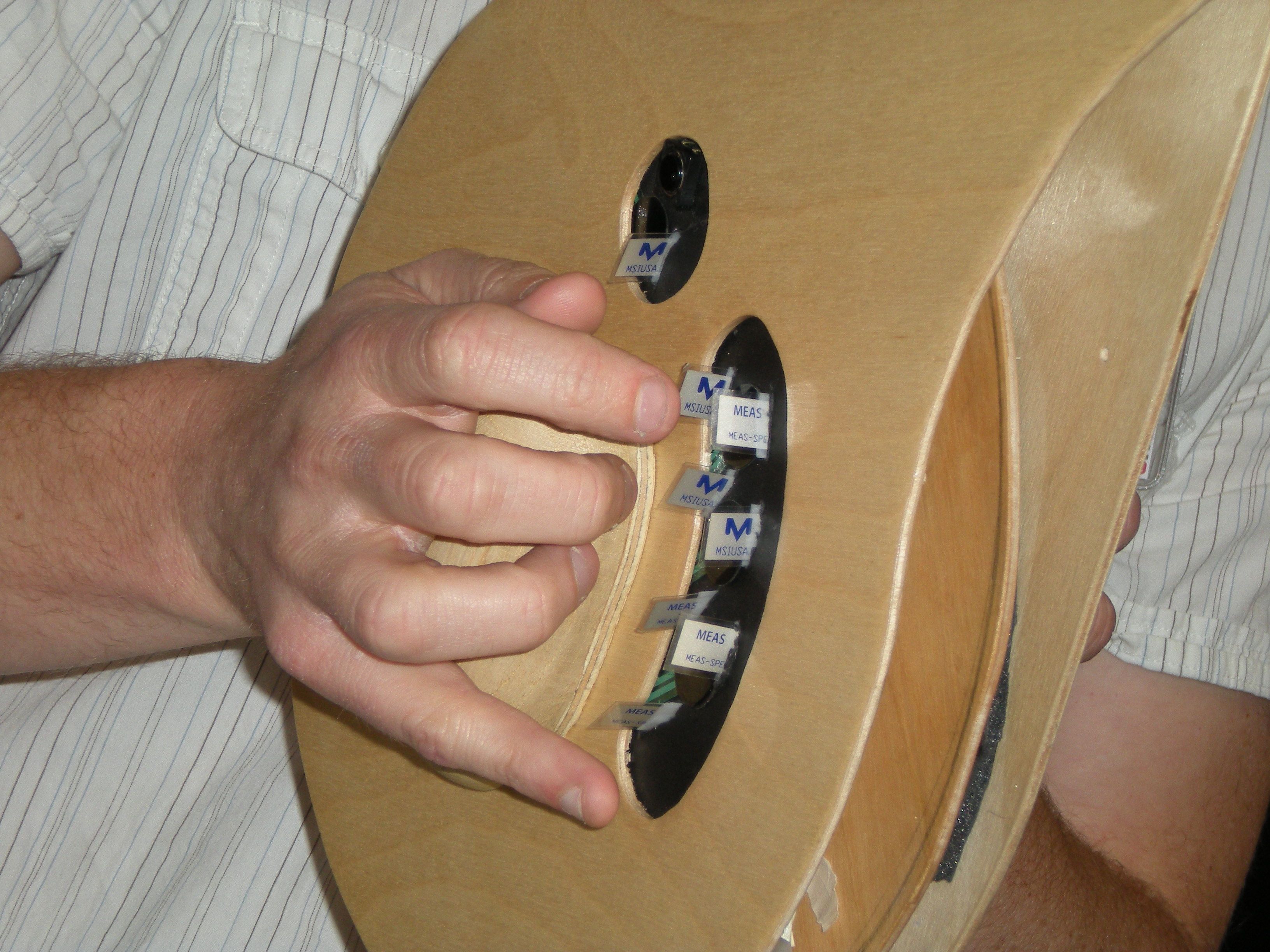 | DIY Kalichord -- played similarly to an accordian (chord and bass buttons on left hand), right hand plucks piezo strips that drive a pluck model directly, no midi. |