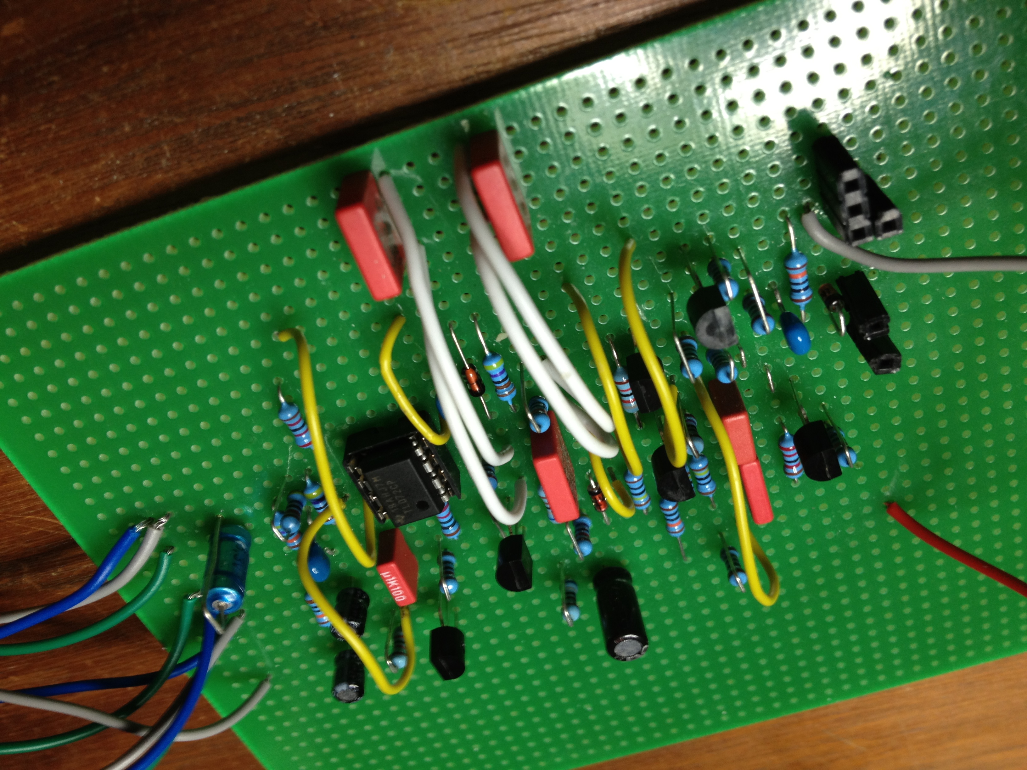 - I've build a +/- 12V power supply and connected it to the stripboard with an extra +12V going into the accent