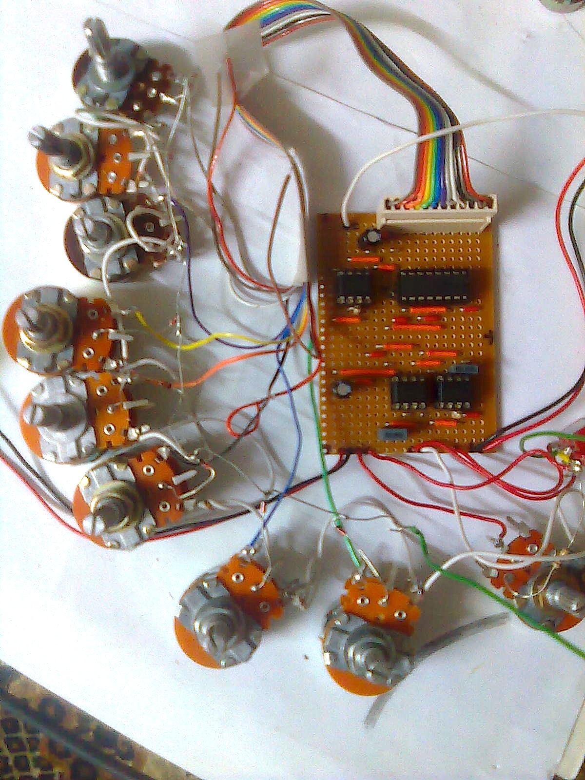All the knobs are working...including myself! As far as the LED's go, I'm going to test the super bright variety in the next couple of days. I'll post results! I really don't see a problem with this stripboard. Perhaps the pot problem is just something inherent with the initial design? I really don't know... only been soldering for just over a year... like you, I'm still learning!