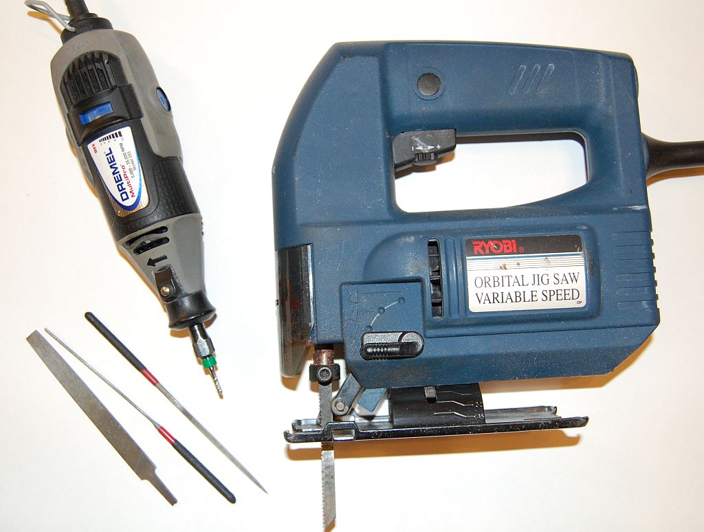 First I made a small entry hole using the Dremel tool and a PCB router bit. Second I made the major cuts using the jig saw. I then widened the slot with the router bit, and cleaned the slots up with several files. Expect several blisters on your fingers before your are done.