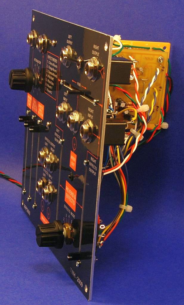You can also see the Reverb module with the Spin Semiconductor FV-1 IC. I used the Tonepad PCB layout and added the perfboard for input/output signal conditioning and the diode matrix switching.