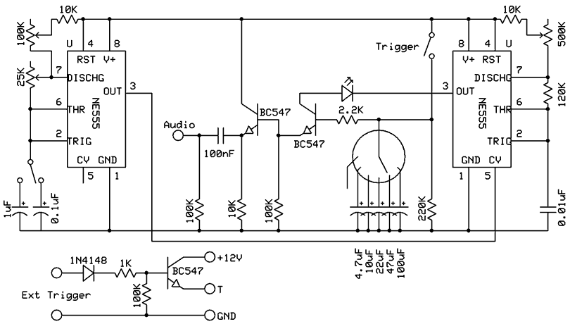 - A simple trigger circuit connected parallel to the Trigger switch.