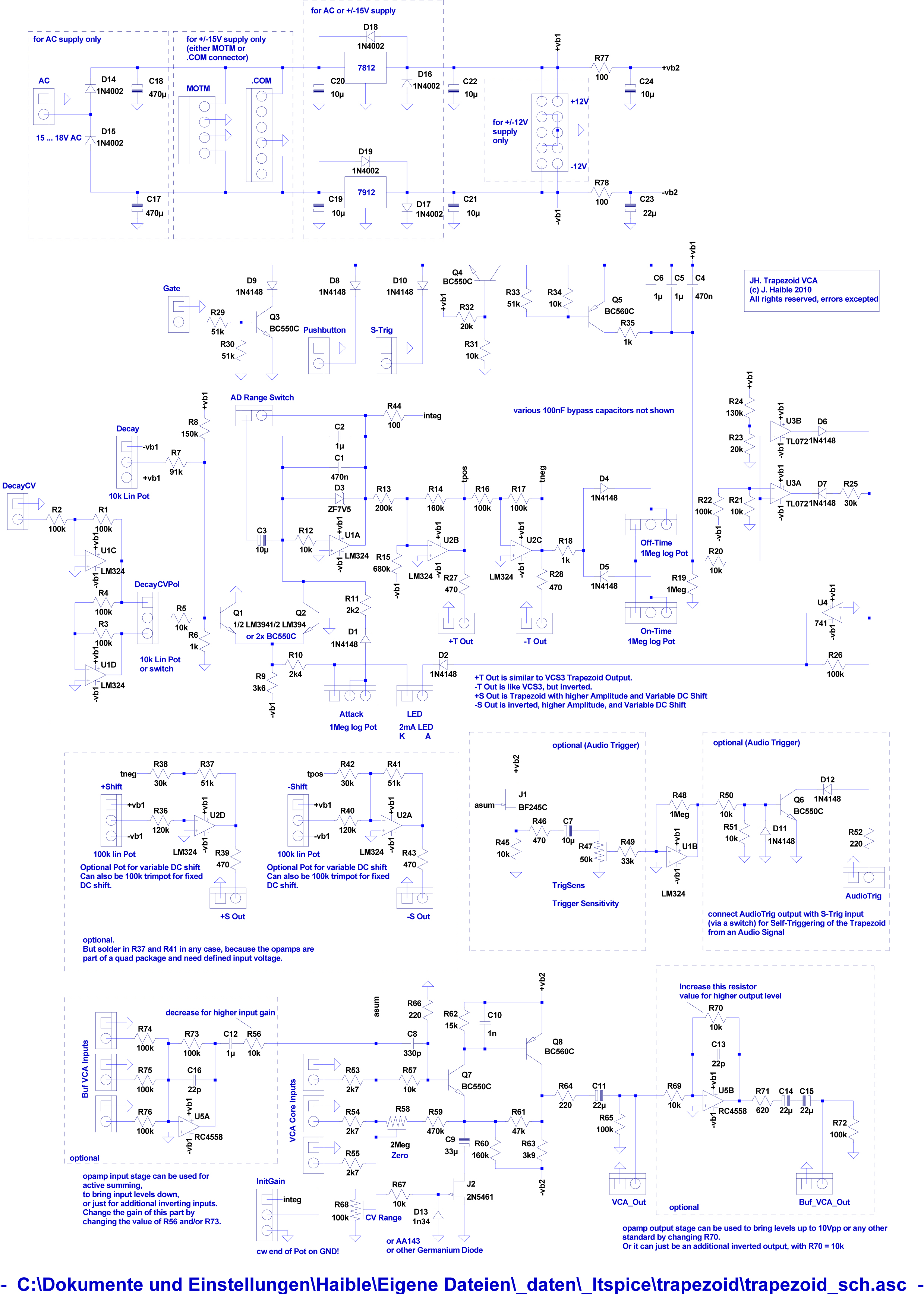 The vintage schematic has been sligthly adapted to modern modular synthesizer standarts
