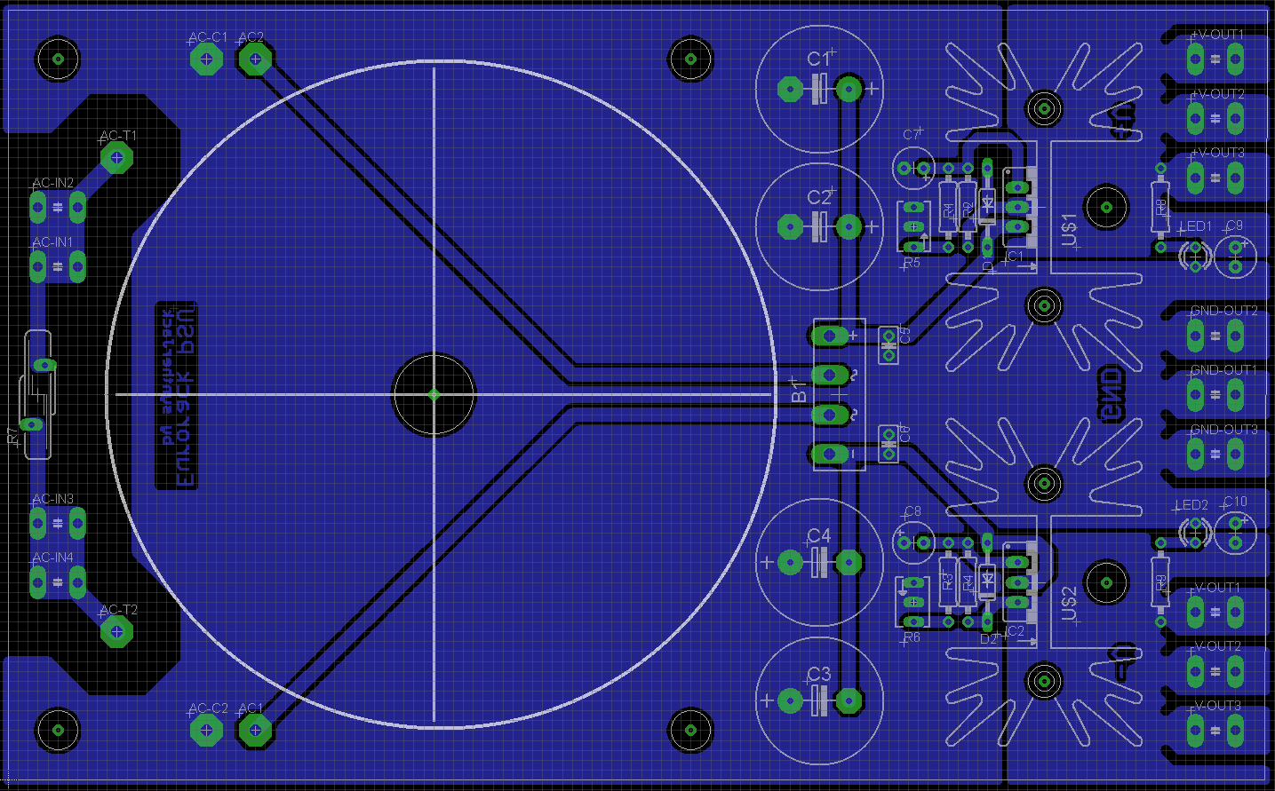 I'm working on my big and fat modular drum synth. As first, I completed PSU - it is designed for euro standard (+/- 12V). Below you can find: