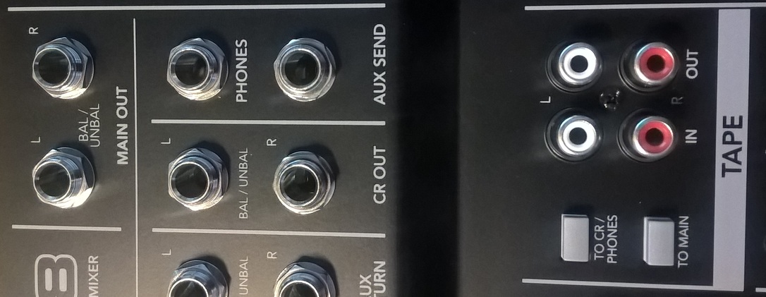 I bought my first mixer yesterday, its an simple Mackie Mix8. Now I am wondering what the correct connection to the Soundcard in my PC is. The salesman sold me a cable with a stereo minijack and 2 mono quarter inch jacks. The mixer also has an recording output as you can see on the picture. What are the advantages and disadvantages of connecting the main out or the Tape out to the soundcard? I plan to build a amplifier with 4 TDA2030 in bridge configuration for the "monitors". This i want to connect to the CR output.