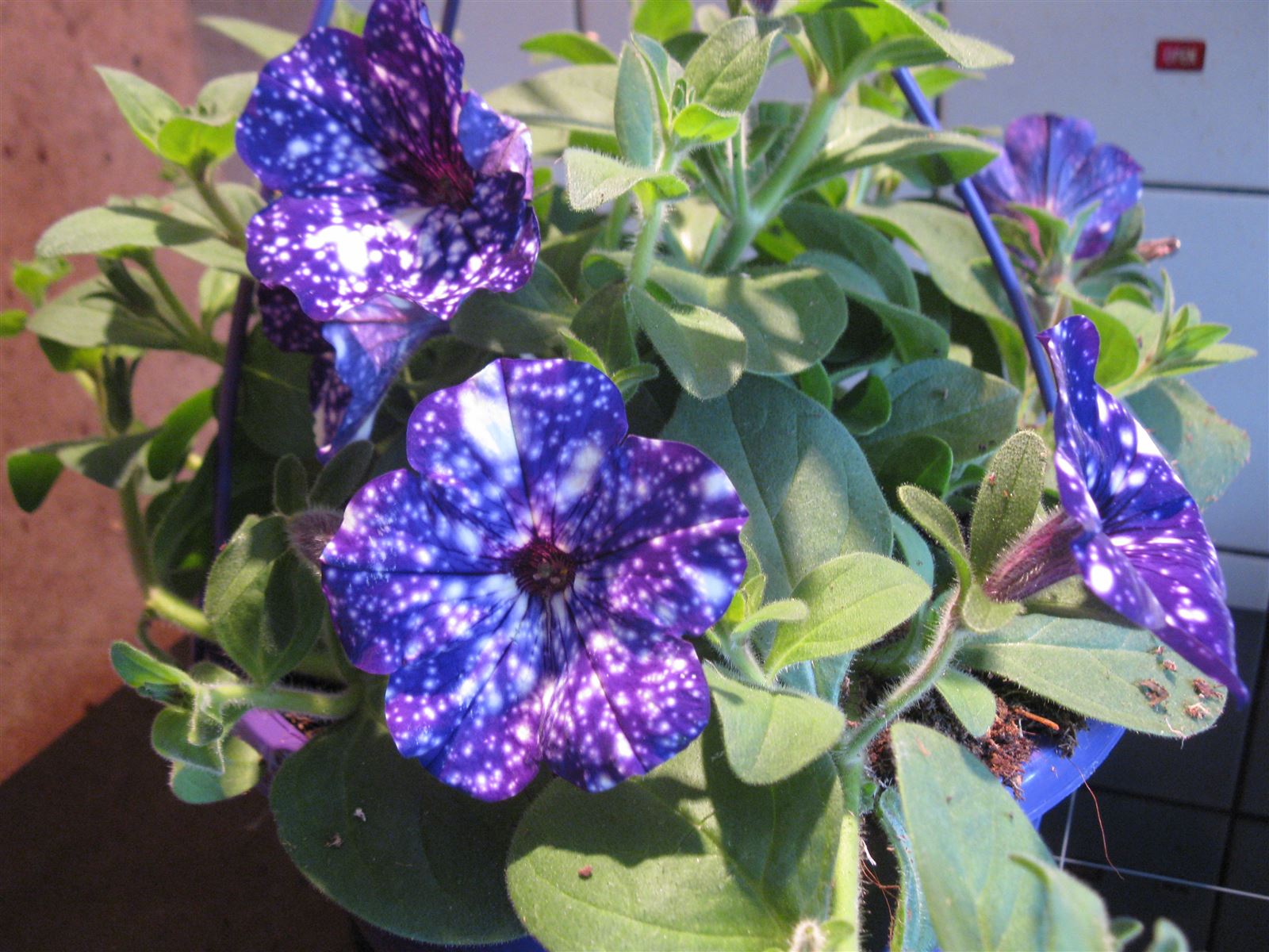 let's start with the night sky petunia. I didn't expect a lot from a supermarket plant and I managed to kill one in a about a day before,