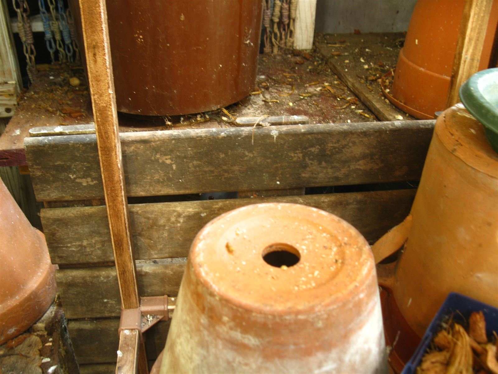 I made a small plant table to place on top of another one, so now the insect hotels can go underneath and some pots on top so they get more light.