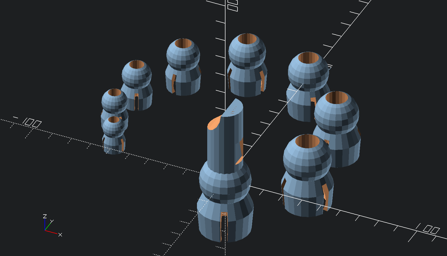 I got to thinking about the segmented nature of the design and soon the notion arrived that it would be cool to make the thing more lively, more wyrm like in motion and in sound. So After some experimentation I developed the attached design images and the 3D printing code thad creates them.