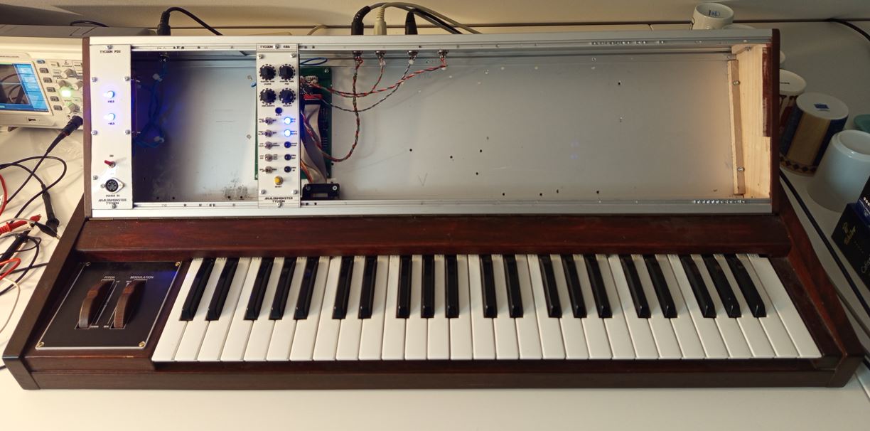 It is a system which is mainly inspired by the famous Synton Syrinx, but beside the Syrinx functions the TyCoon will provide some extra features and additional functions, like MIDI handling, stereo output panner, sequencer and others.