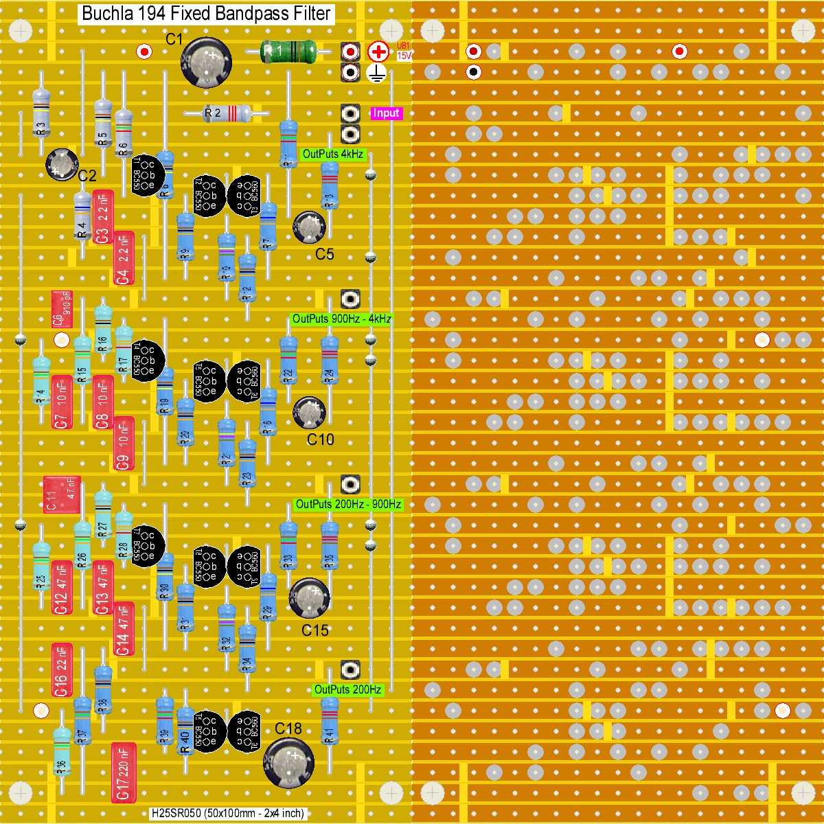 < Diode Waveshaper by Jim Patchell | Schematics | Hip Bass drum by Craig Anderton > DIY | Filter | Fixed filter | Marjan Urekar | Nardu Buchla 194 Fixed Filter ,redrawn by Marjan Urekar , stripboard layout by Nardu from this thread : http://www.electro-music.com/forum/viewtopic.php?p=377289#377289 ![]() ![]()
